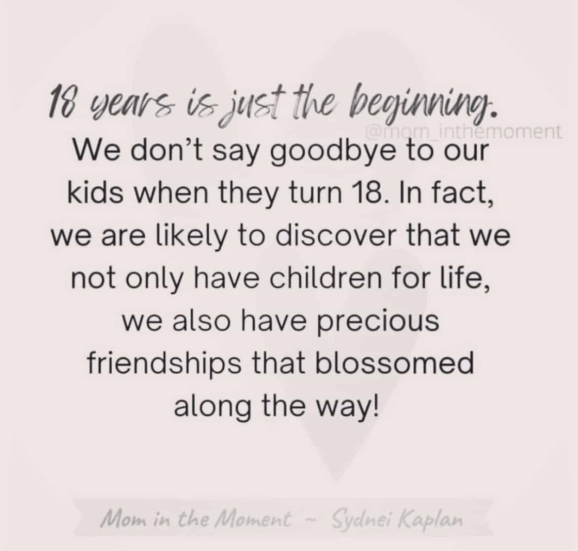 Remember, you’re both on a journey. And as parents, it’s our job to help our adult children onto the next phase of their lives, whether we want to or not.