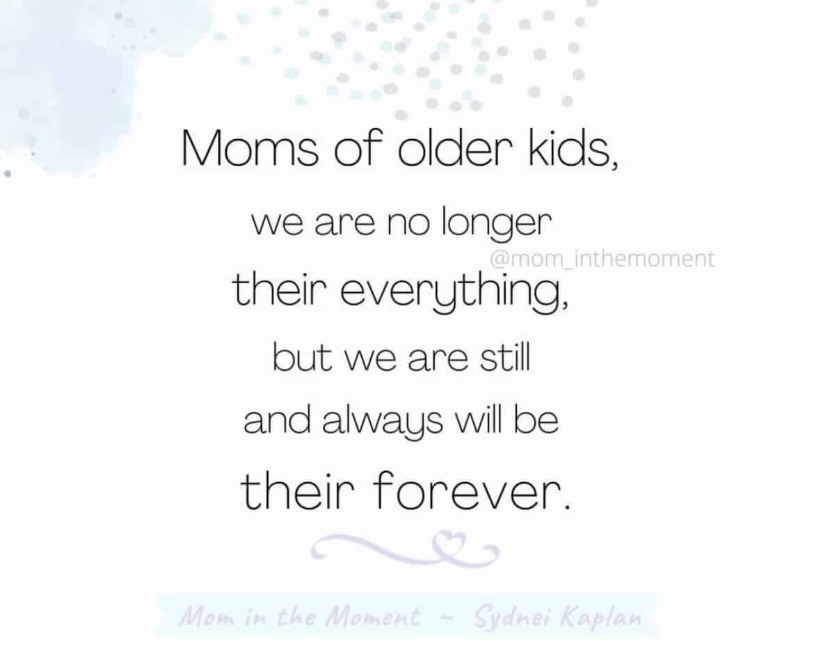It may feel like you’re losing them because you’re no longer the centre of their lives, but you’ll always be their mother. Your relationship will simply be different. You’ve gone from being the boss to being more of a colleague or friend. You’re no longer in control and in charge, but you’re now someone who offers support.